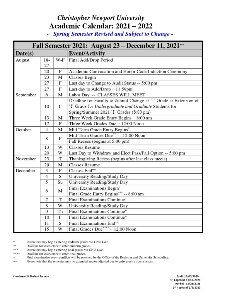 Cnu 2021 2022 Academic Calendar Download Free PDF Academic Term