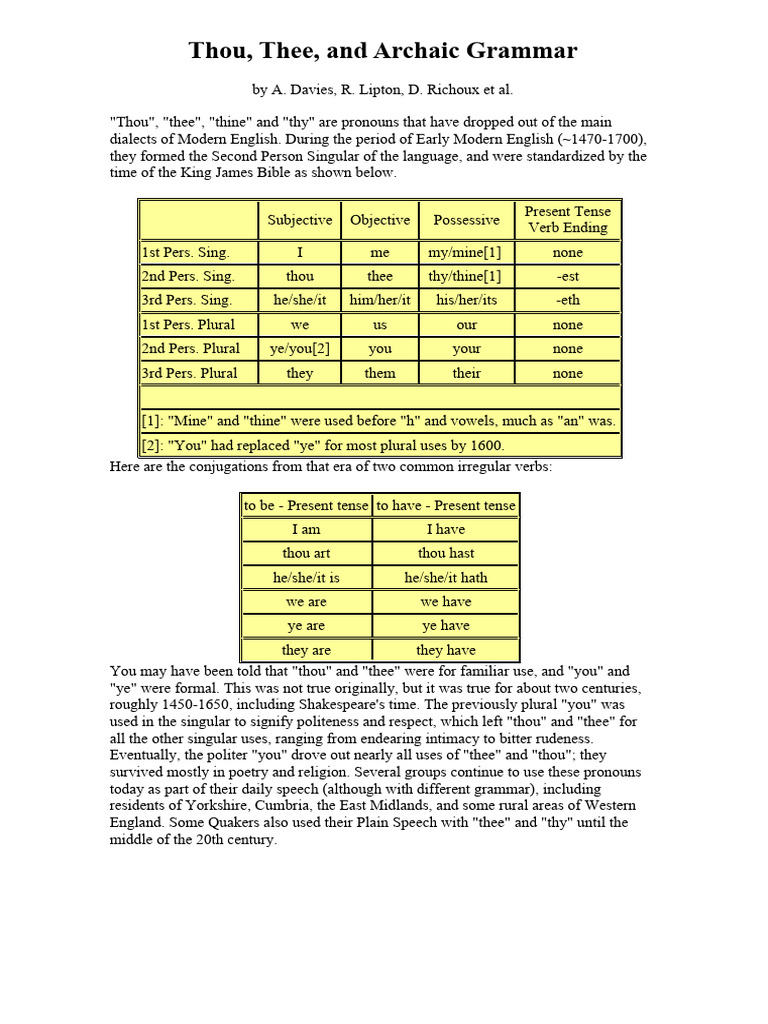 Archaic Forms in English PDF Thou Philology