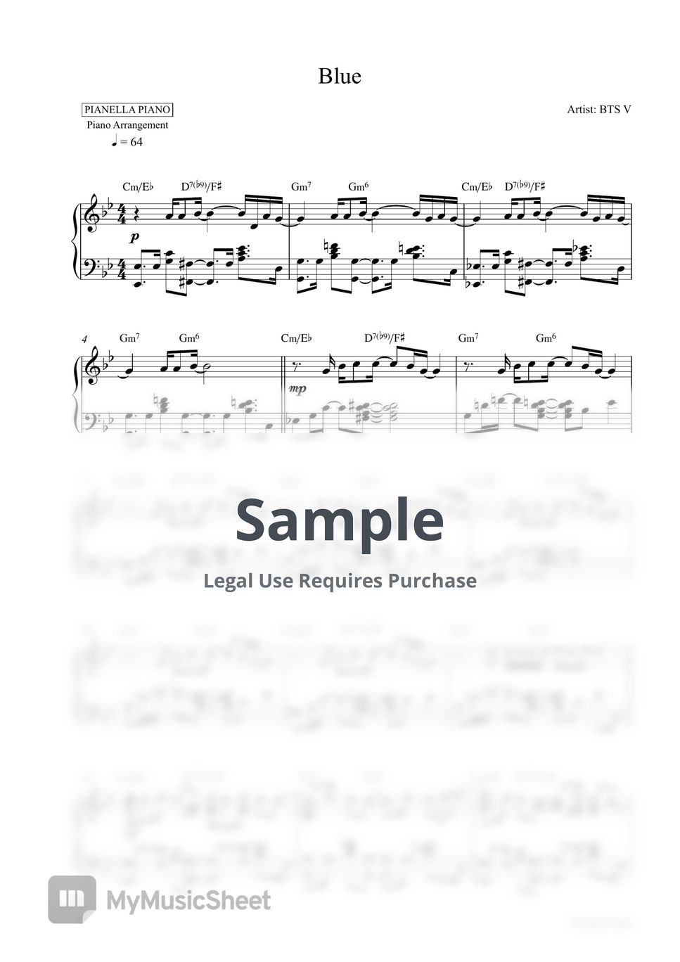 BTS V Blue (Piano Sheet) Sheets by Pianella Piano