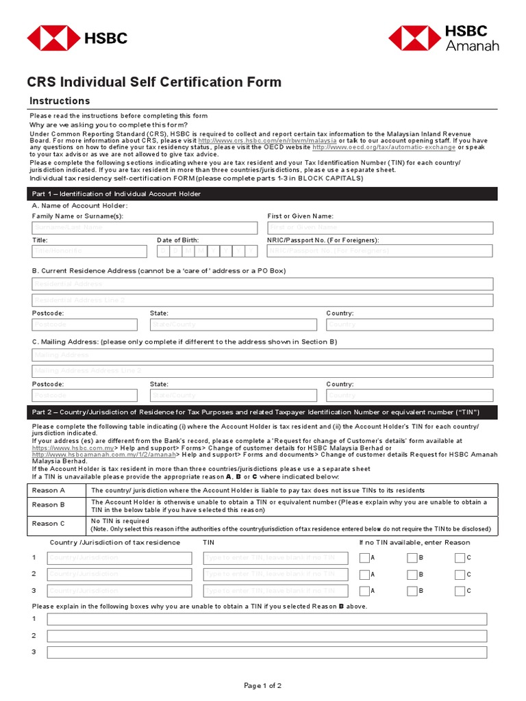 CRS Individual Self Certification Form Instructions PDF Taxes