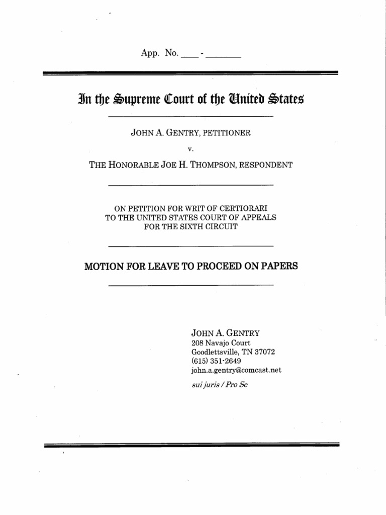 SCOTUS Pro Se in Forma Pauperis United States Constitution Supreme