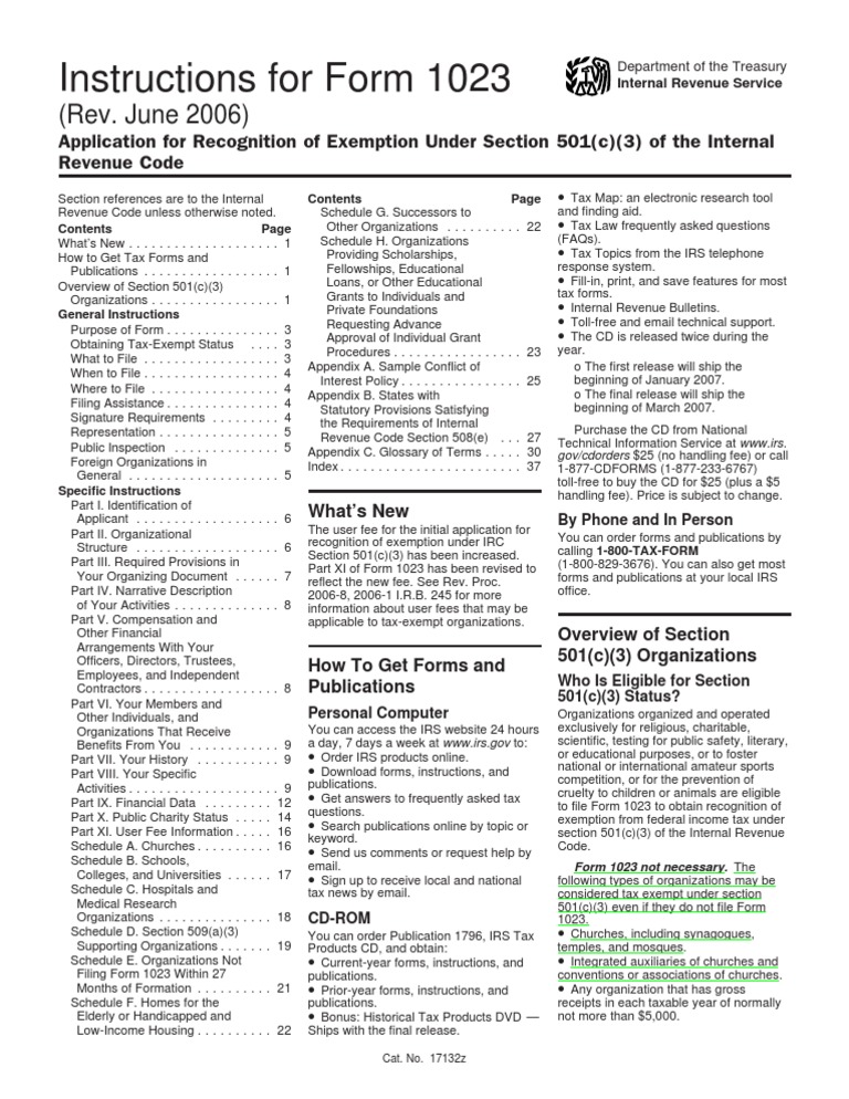 Instructions Form 1023 PDF 501(C) Organization Internal Revenue