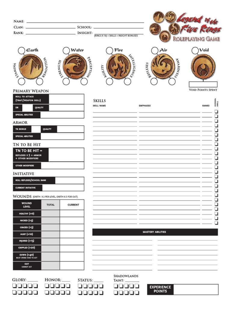 L5r 4th Edition Form Fillable Character Sheet Printable Forms Free Online