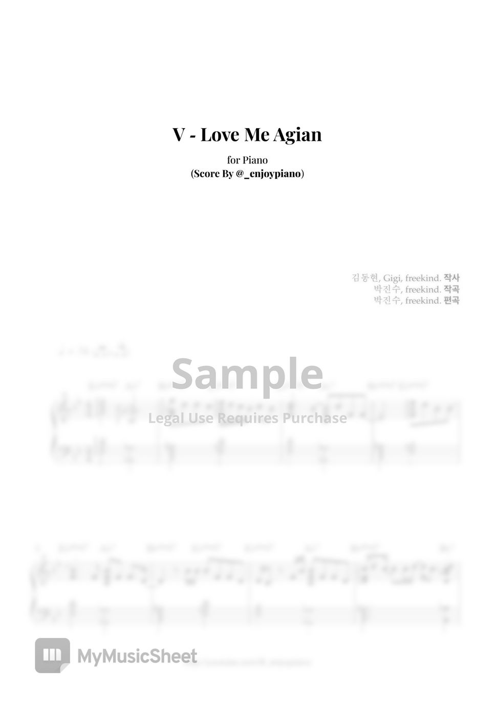 뷔 V (방탄소년단, BTS) Love Me Again (Piano Cover) Sheets by _enjoypiano