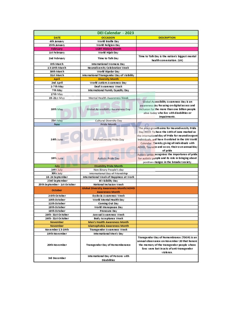 Key Diversity, Equity, and Inclusion Calendar 2023