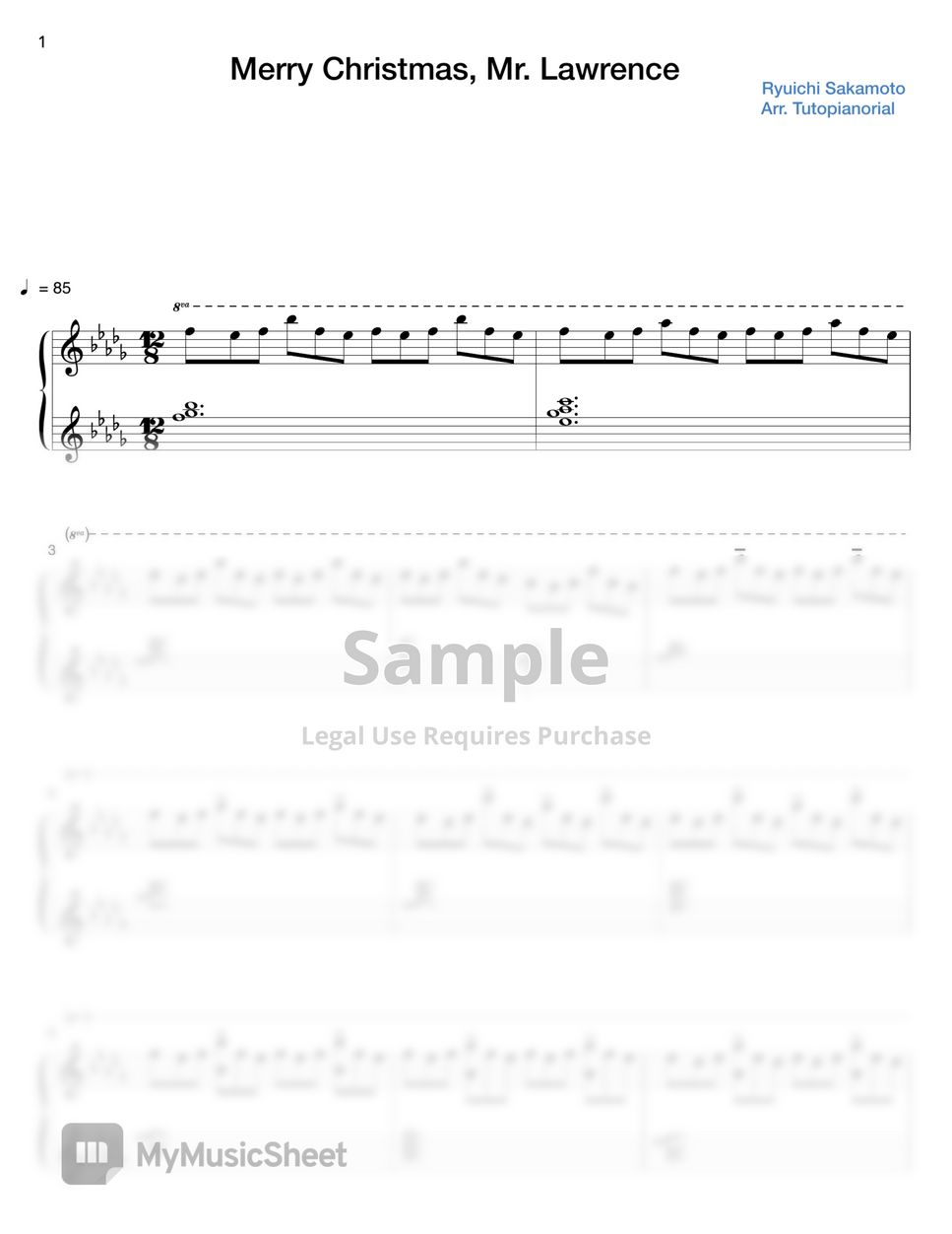 Ryuichi Sakamoto Merry Christmas,Mr.Lawrence (Piano Solo) Sheets by
