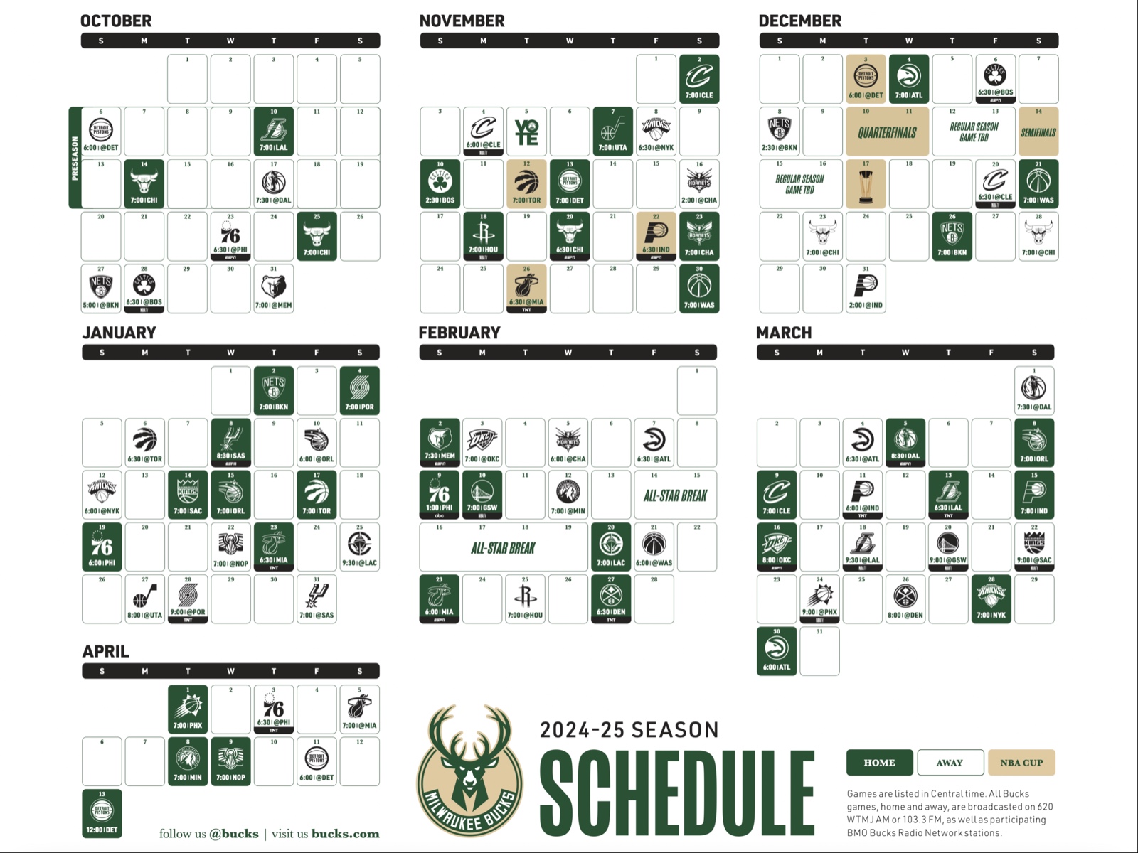 Printable 202425 Milwaukee Bucks Schedule; TV Broadcasts and Matchups