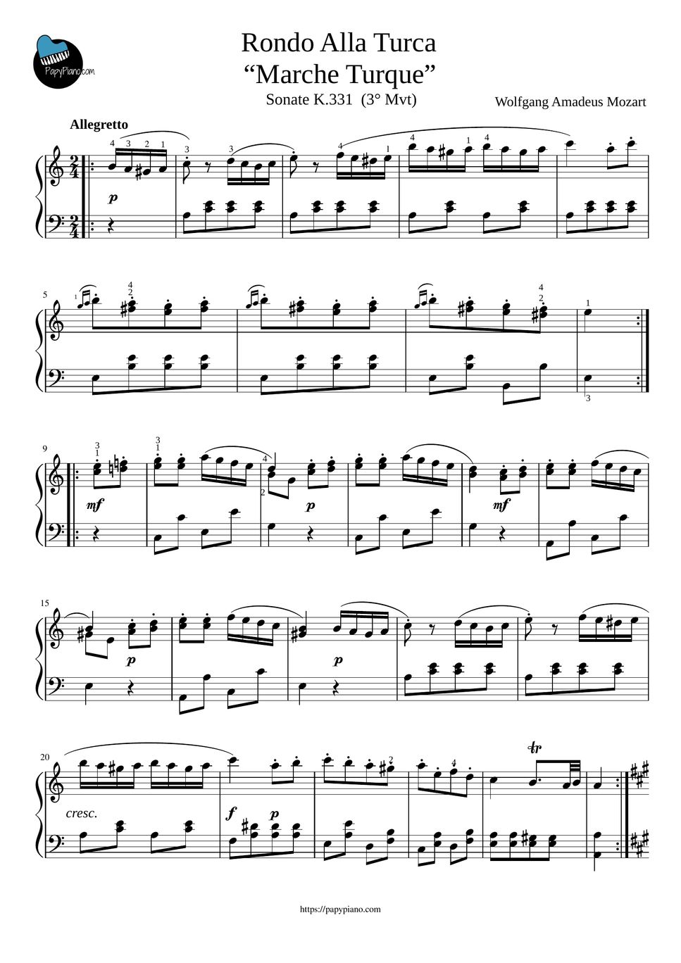 Wolfgang Amadeus Mozart Piano Sonata No. 11, K. 331 (Turkish March