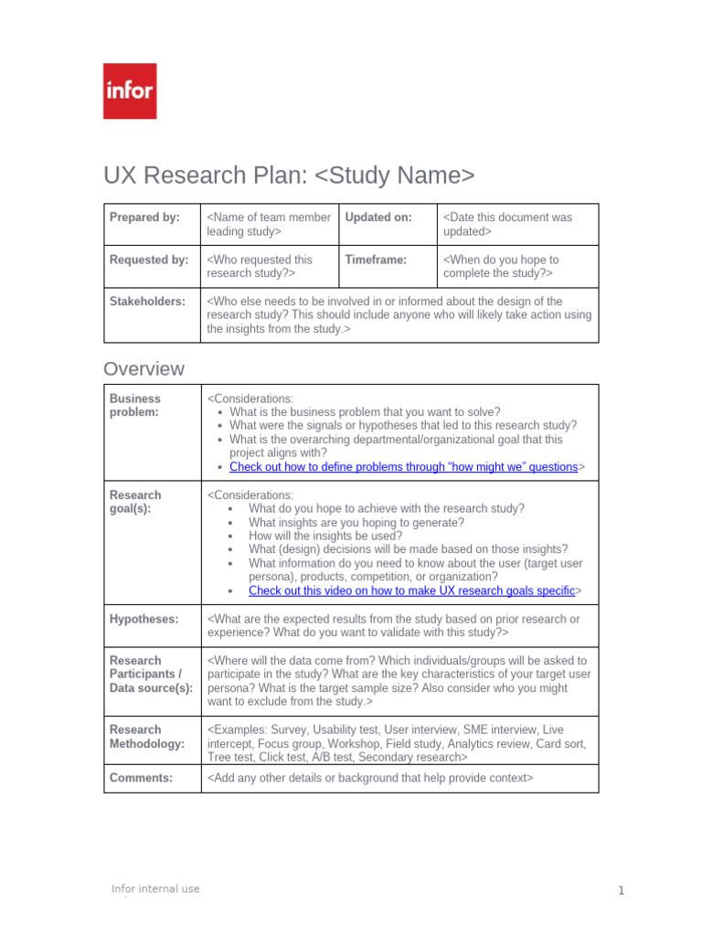 UX Research Study Plan (Template) PDF Usability Communication